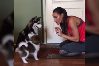 Impossibly Cute Corgi Generously Tries To Share Bone With His Own Reflection