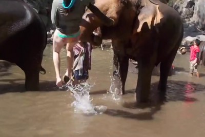 Truck Drivers Stop To Help Thirsty Baby Elephant By The Side Of The Road