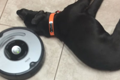 Lazy Dog Doesn't Care About Roomba Cleaning Robot