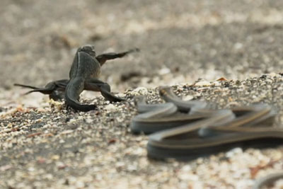 Intense Footage Of Marine Iguana Hatchlings Risking Their Lives Whilst Running To The Safety