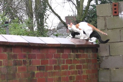 Cats Jump At Same Time, Land Directly On Top Of Each Other