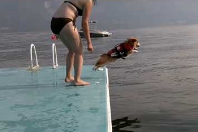 Adorable Corgi Jumps Off Dock And Does Spectacular Belly Flop