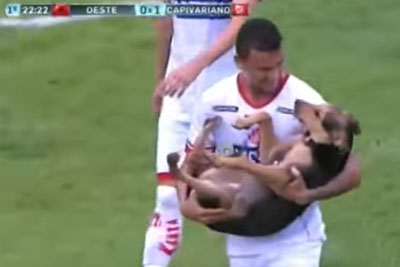 Stray Dog Runs Onto The Field During Soccer Game And Gets Treated Like A Baby