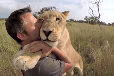 Man Cradles Head Of Massive Lion, Fulfilling Big Cat Fantasy Most Of