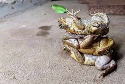 He Hypnotized Toads After Grabbed Them, Then He Placed Them On The Top Of Each Other