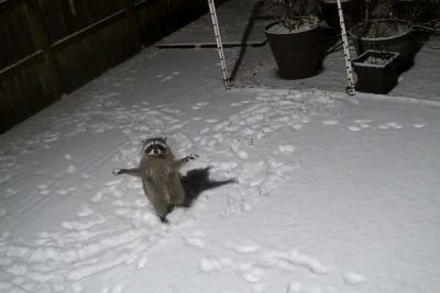 Raccoon Tries To Catch Falling Snow