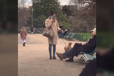 Dog Jumps And Climbs On A Random Stranger