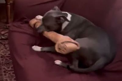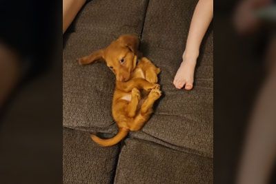 Cute Little Pupper Slips Into The Sofa