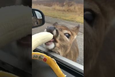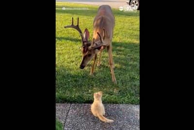 Tiny Kitten Gets Close To A Deer To Become Its Friend