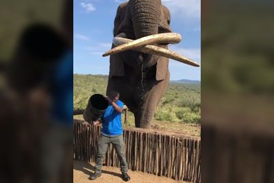 Huge Elephant Drinks Gallons Of Water In Seconds