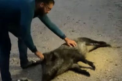 Wild Boar Comes Next To People To Get Some Petting And Love