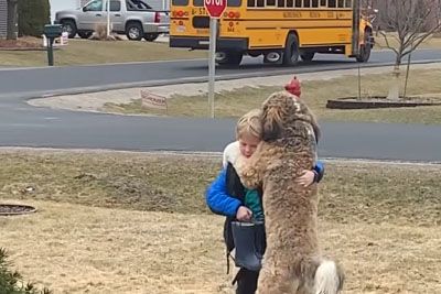 Dog Waits And Hugs Little Boy After Getting Off School Bus