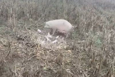 Farmer Finds A Pig With Her Piglets In The Middle Of A Field