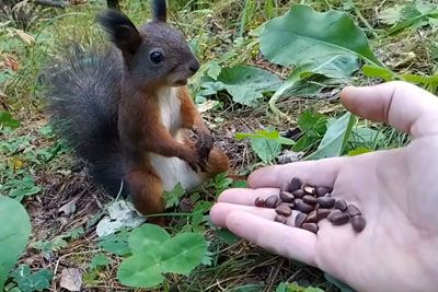 Squirrel Freezes After Man Gives It Some Delicious Treats