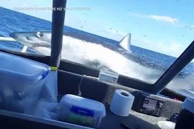 Shark Lands On Boat, Thrashes On Bow After Leaping Out Of Water