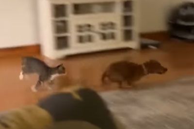 Cat Joins Dog's Zoomies Couch Parkour Sesh
