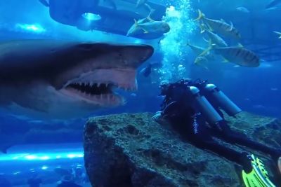 Divers' Close Encounter With A Scary Shark At The Dubai Aquarium