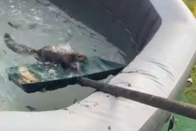 Squirrel Trapped In Hot Tub Is Saved By A Woman