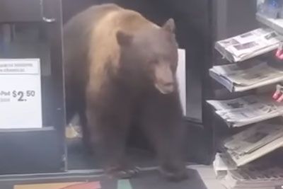 Huge Brown Bear Enters 7-Eleven Store To Eat Candy Bars