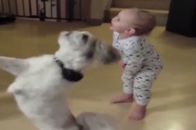 Dog Stands Up For A Treat, But It's The Baby Who You Need To Really Watch