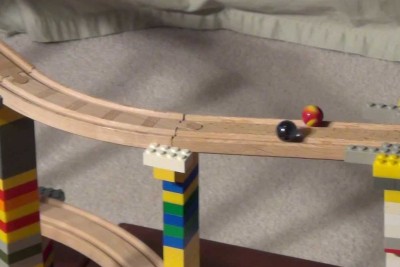 Which Marble Will Win This Race On Wooden Train Tracks?