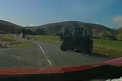 Tractor Has Near Miss With Car