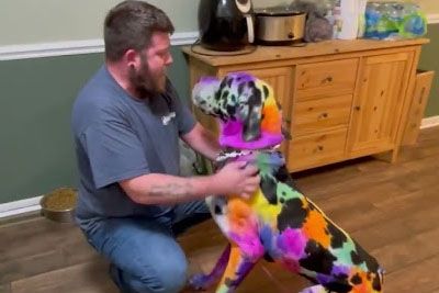Husband Does Not Approve Of Dog's Colorful Coat