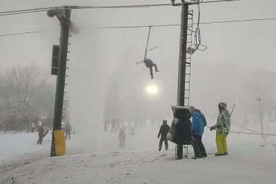 Water Pipe Bursts, Drenching Skiers On The Stopped Chairlift