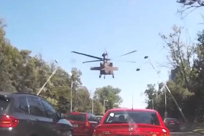 Blackhawk Helicopter Bents The Street Lights During Emergency Landing