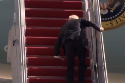 US President Joe Biden Falls Down Walking Up Steps Of Air Force One
