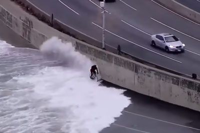 Cyclist Gets Smashed To The Ground Due To High Waves
