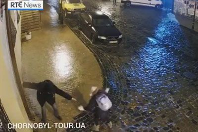 CCTV Camera Captures A Slippery Street In Kiev, Ukraine