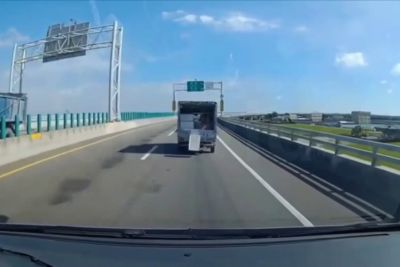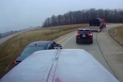 Car Tries To Cut In Front Of 80,000-Pound Truck, Driver Is Having None Of It