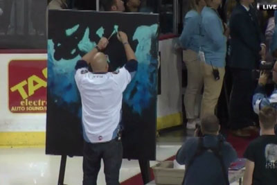 Man Sings US National Anthem At Hockey Game While Painting A Picture