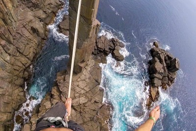 You Will Be Afraid To Move While Watching This Crazy Guy Walking On A Slackline Over The Moai Tower