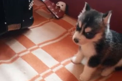 Musician Plays Accordion In The Accompaniment Of The Dog