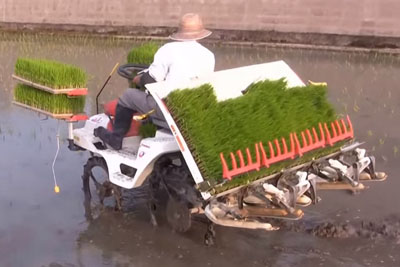 Farmers In Japan Planting Rice With Rice Planting Machines