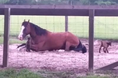 Baby Goats Spot Resting On Horse. This Is The Scene Caught On Film!