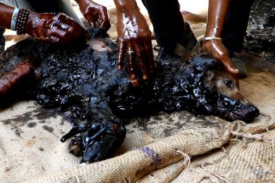 Dog Turned Rock-Solid In Tar Drum, Good People Save Her Life