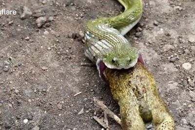 Small Green Snake Spits Out An Astonishingly Large Frog
