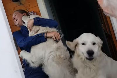 Golden Retrievers See Their Owner For The First Time In Six Months, Lose Their Minds