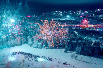 Drone flight over the New Year's Eve fireworks in Zakopane